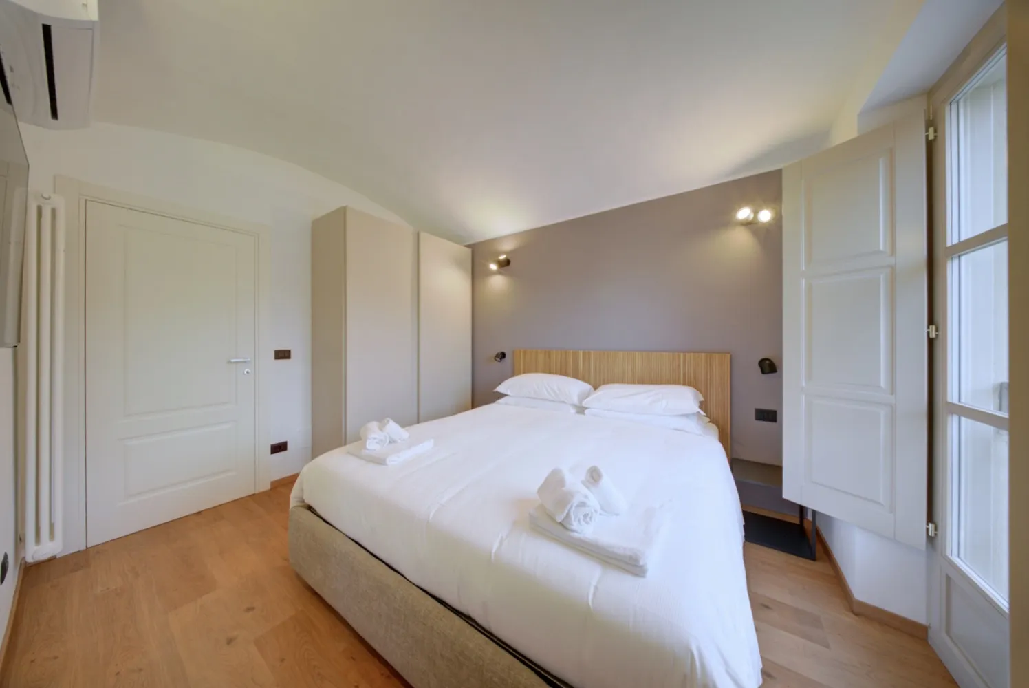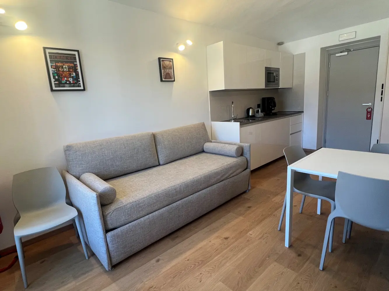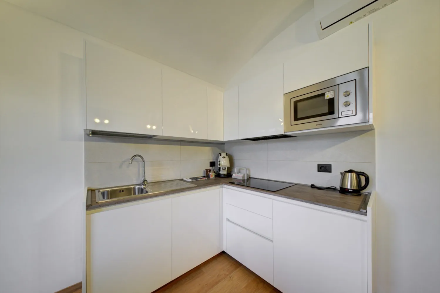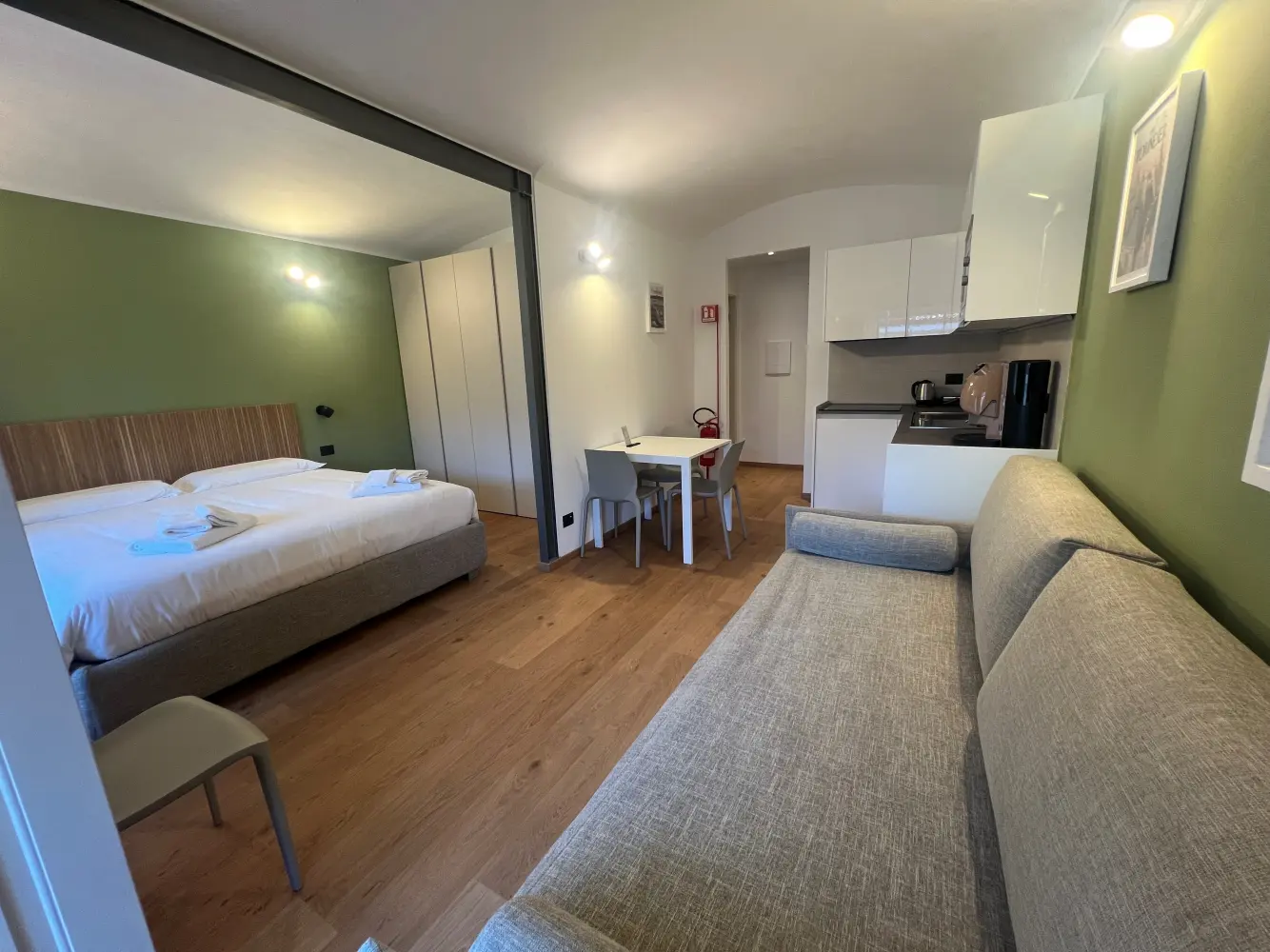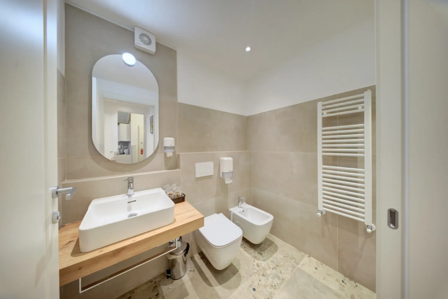 Mini appartamento in Hotel 3 stelle a Torino in centro, accogliente adatto ad ospitare comodamente fino a 6 persone, di mq. 38, con letti singoli e matrimoniale. La camera è provvista di pavimento parquet, di aria condizionata e riscaldamento autonomo, SMART TV da 43″, canali satellitari, cassaforte elettronica, business desk, telefono con linea diretta, 2 linee wi-fi, bagno con doccia, minibar. Arredamento in stile e porta da 90 cm per un accesso facilitato. Soluzione B&B.